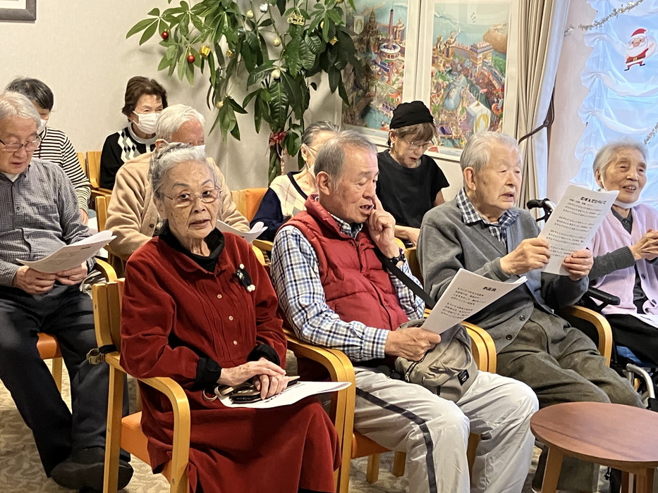 和気ハウス麻生では、12月21日に開設3度目となるクリスマス会を、一階の談話室にて開催しました。