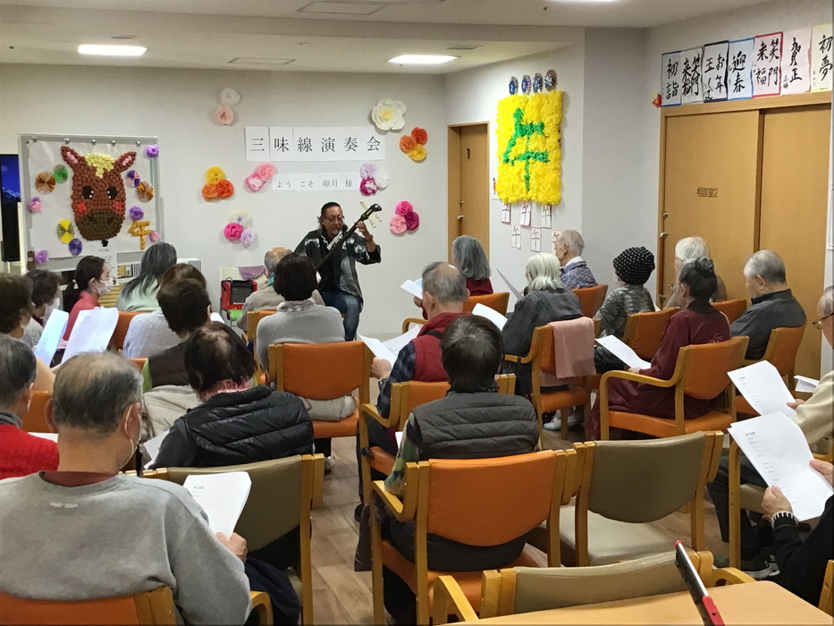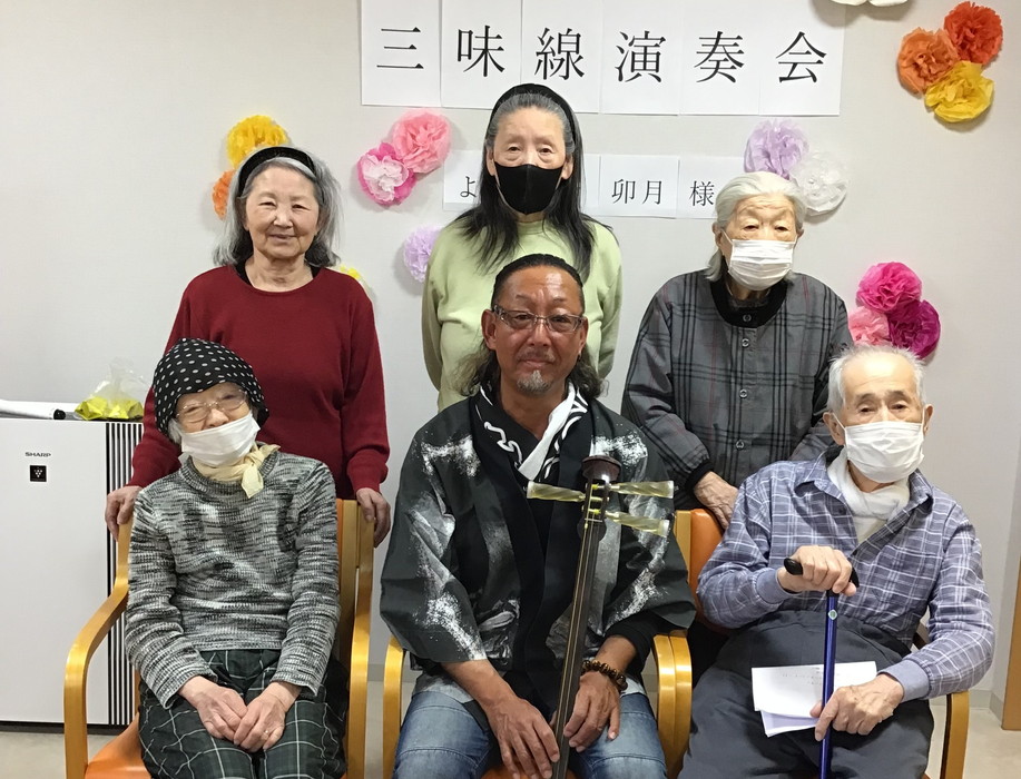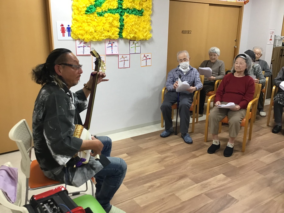 地域では有名な民生委員の卯月さんにお越し頂き、三味線演奏会を開催しました。ご近所にお住いの方々にもお声がけさせて頂き、沢山の方がご来場してくださいました。ありがとうございます。