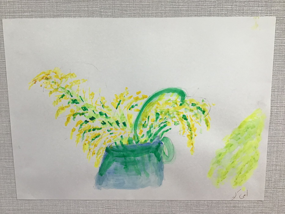 テーブル飾ってあるミモザを見て水彩画をしたためる利用者様もいらしゃいました。