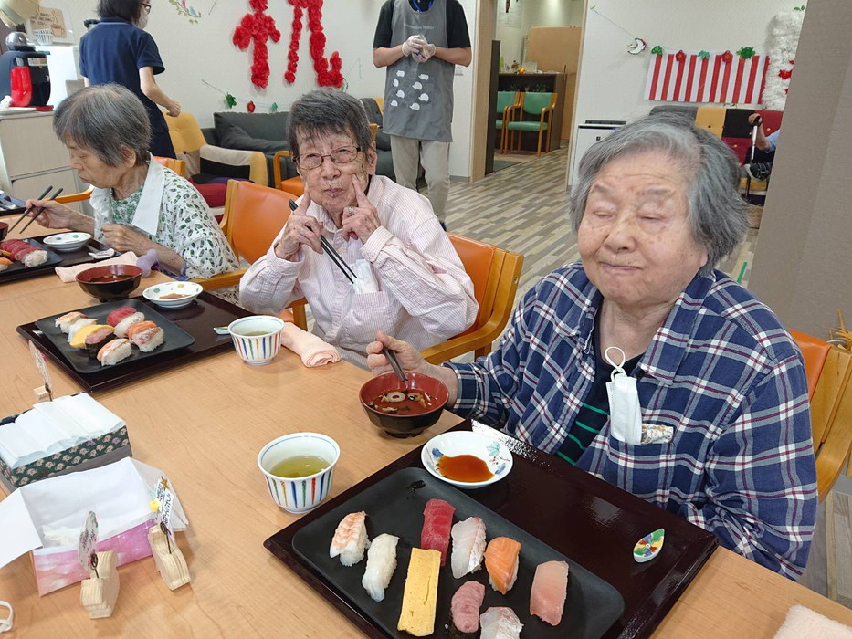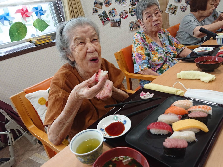 敬老会2日目はお寿司でお祝いです。やはり皆さんお寿司は好きですね!とても喜んでくださいました。