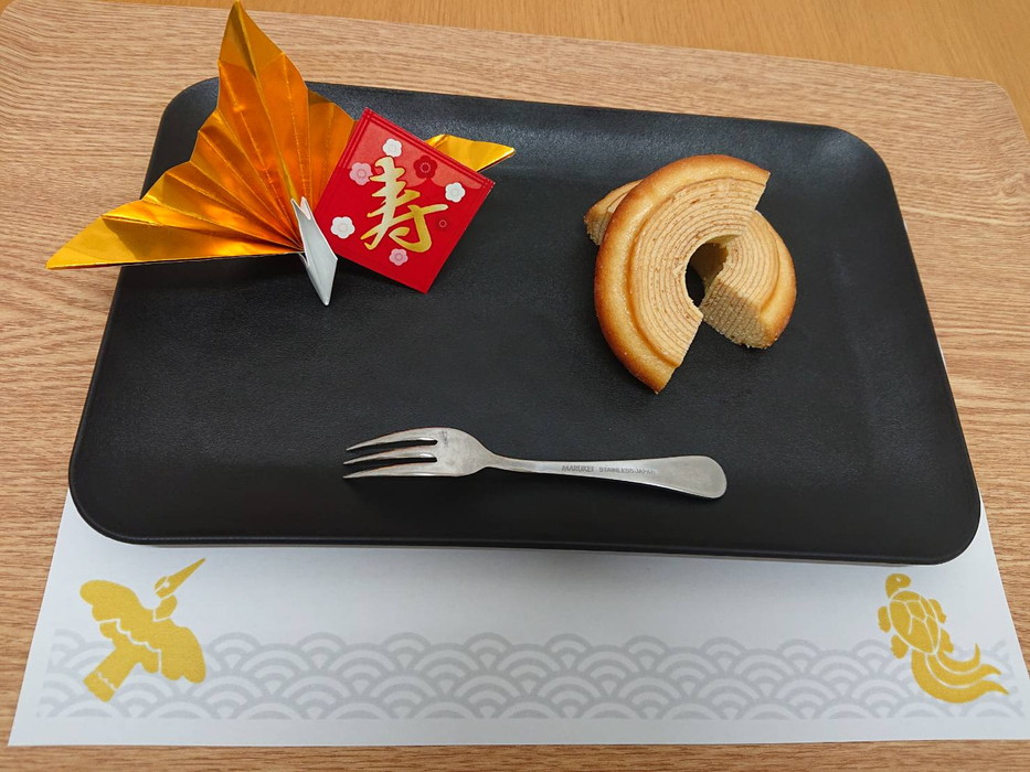 おやつはとてもおいしいバームクーヘンを提供しました。皆さん大満足!