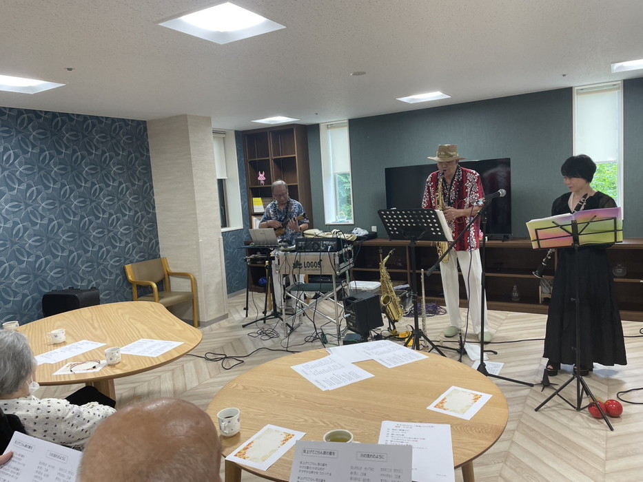 昼食後はコンサートを開催しました。皆さんに日頃の感謝を音楽でもお伝えしました。音色に癒されます。