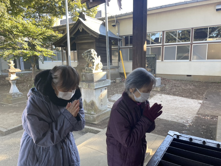 冷たい空気の中でしたが、神社に到着すると自然と背筋が伸び、手を合わせる表情はとても穏やかで真剣そのものです。