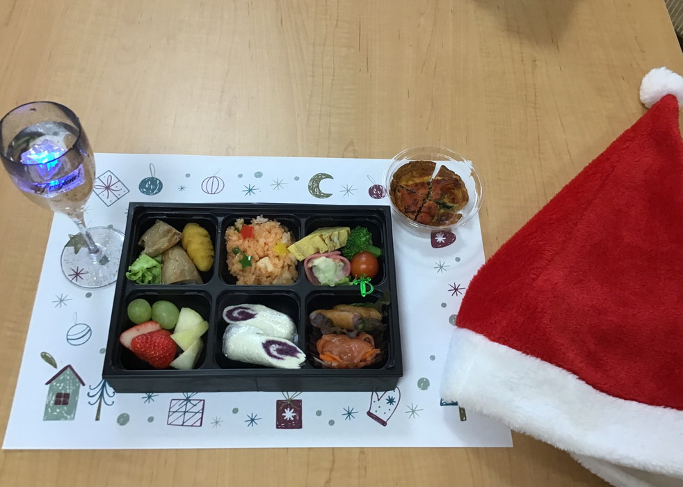 「きれいだね」「クリスマスらしいね」と、食事前から笑顔があふれ、いつもより華やかなクリスマスランチを楽しんでいただきました。