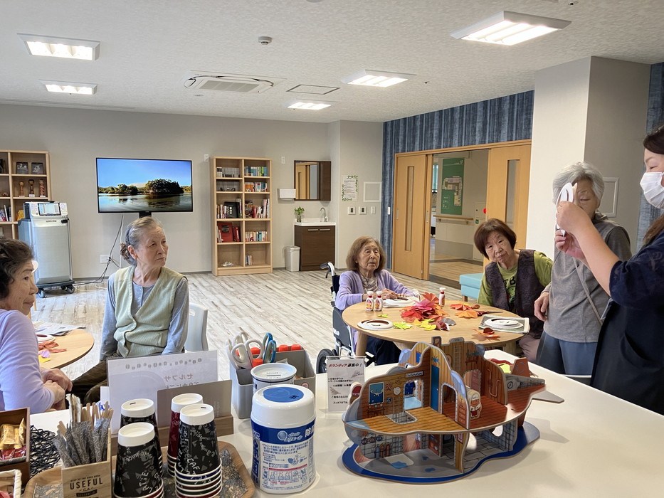居住者の皆さまに、茶屋を彩る秋の飾りづくりをお手伝いいただきました。