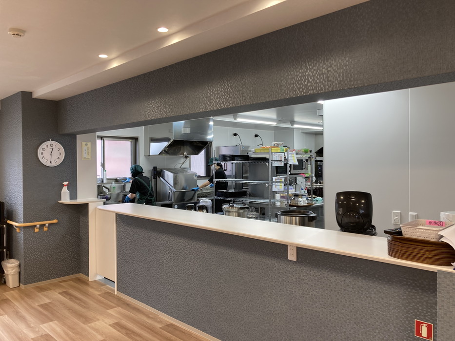 食堂の座席配置については、歩行器や杖を置くスペース、車椅子の方が通りやすい通路幅の確保、さらには向かい合って食事をしたい方や、そうではない方への配慮など、座席移動を繰り返しながら多くの方にご利用いただいております。