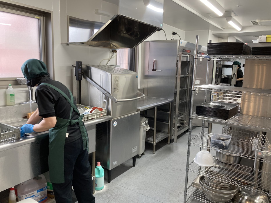 昼食の片付けと並行して夕食の準備を進めている様子です。
