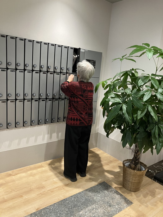 「おはようございまーす」と元気な声が聞こえ、居住者がポストへ新聞を取りに来ました。