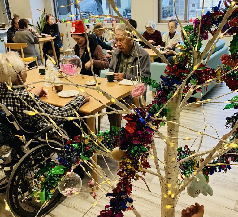 会場は「おとぎの国」をコンセプトに、居住者の皆さんと一緒にメルヘンチックなサンタの飾り付けを行い、会場を癒しの空間に設えました。
