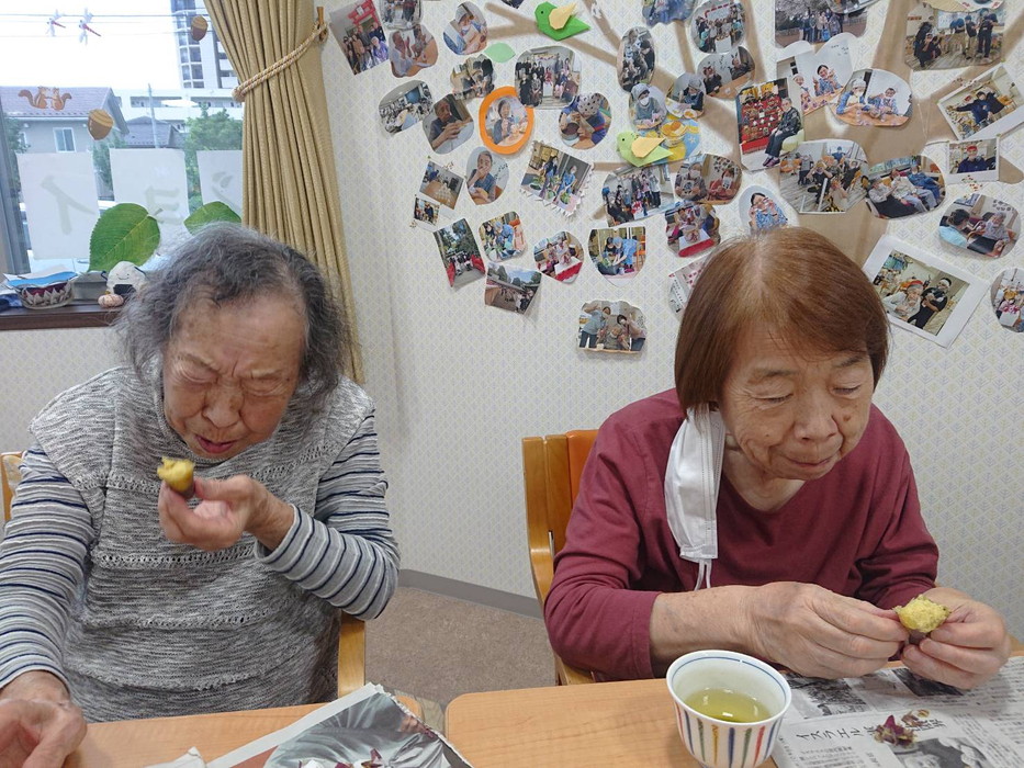今年はさつま芋「紅あずま」と「紅はるか」の食べ比べです。しっとり派とほくほく派に分かれましたが皆さん大喜びでした。アツアツでおいしかったです。