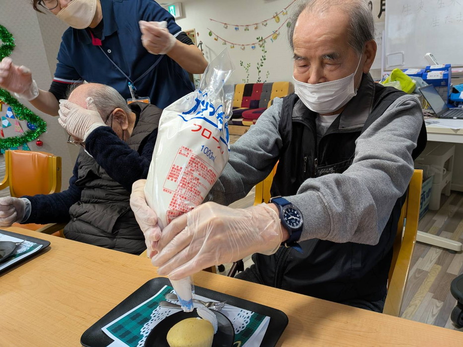 男性の利用者さん大活躍!おいしいカップケーキ作りに真剣です。そしてとても上手に作ることができました!