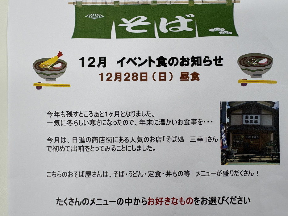 お約束の時間に食堂に勢ぞろいしていただきましたが、10分待っても出前は届かず。